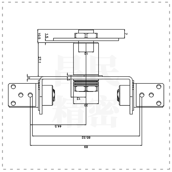 智能机器人转轴,采用经典的双边垫片结构,中轴和侧轴分别双向转动,能够使机器人设备更加灵活的转动。